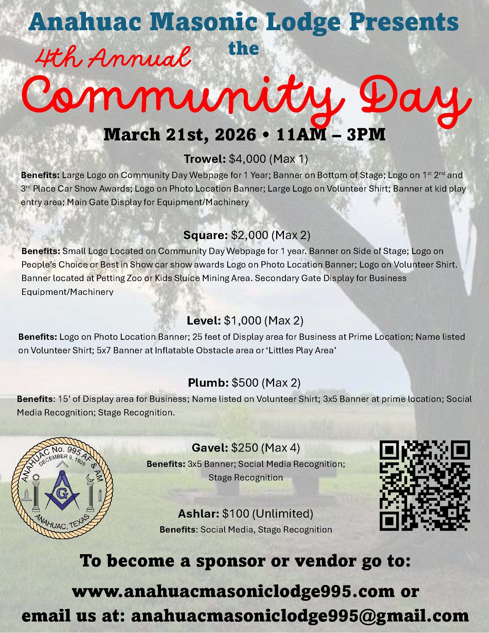 Community Day is Anahuac Masonic Lodge No. 995’s annual family-friendly celebration dedicated to bringing neighbors together through fun, education, and local partnership. Now in its fourth year, Community Day continues to grow, welcoming families from across Chambers County and surrounding communities.